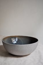 This bowl is handmade on the throwing-wheel in a stoneware grey clay, glazed with a mottled green glaze suitable for food.