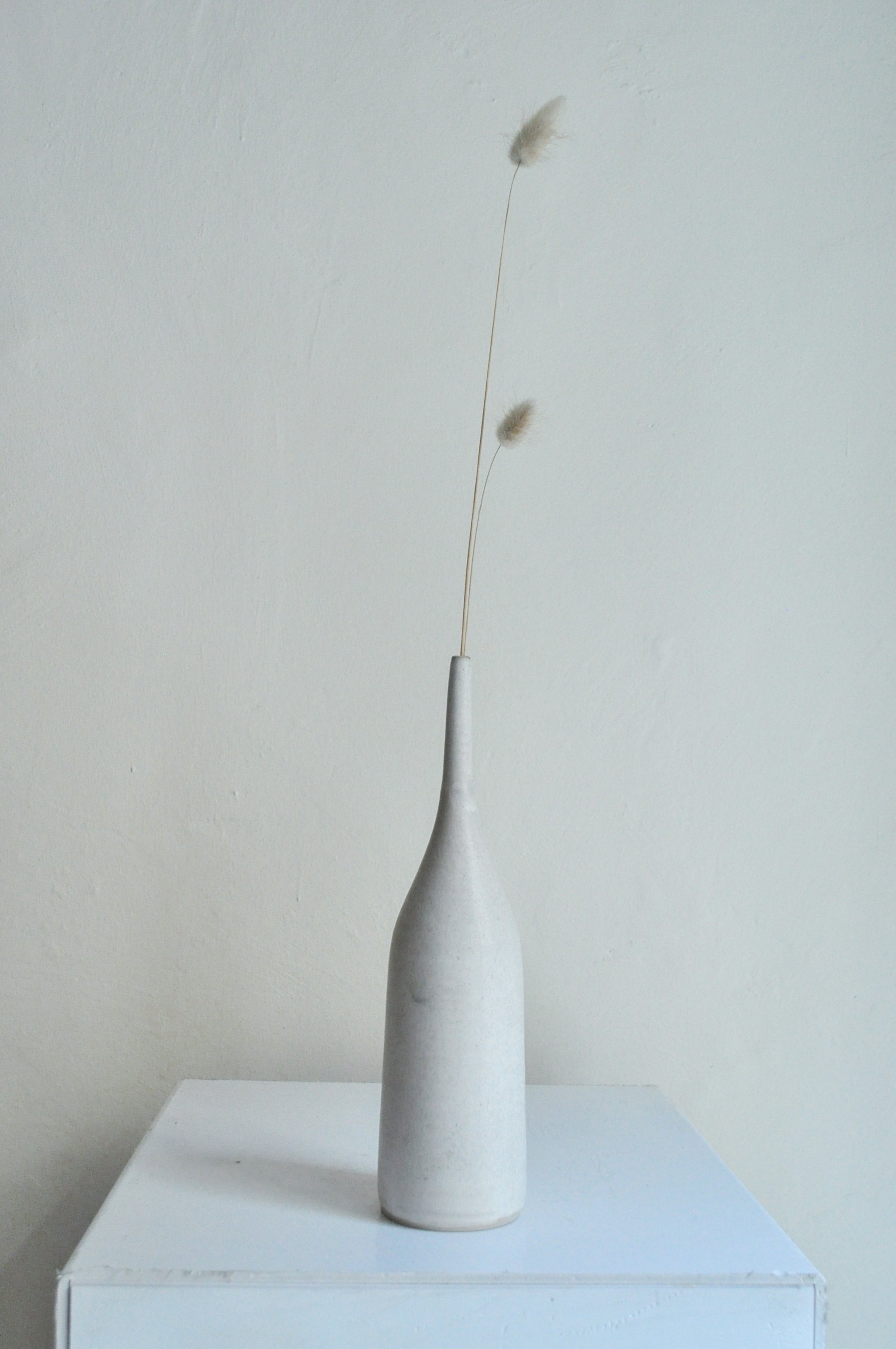 This vase is thrown in a stoneware beige clay, glazed with a matte light grey glaze.